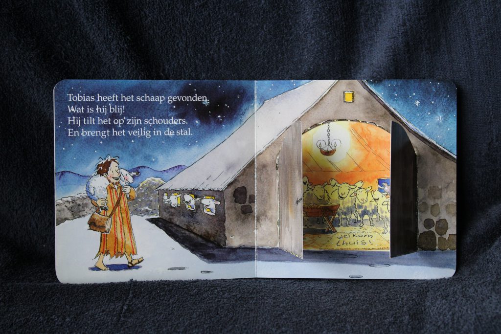 Tobias heeft honderd schapen, maar op een dag is hij er eentje kwijt. Het schaap is verdwaald. Tobias gaat op zoek. Zit het schaap achter de stal of voor het muurtje? Help jij mee zoeken?